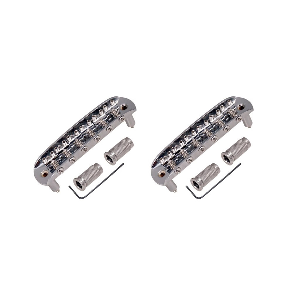 2X Guitar Saddle Bridge with Adjustable Saddles Zinc Alloy for Mustang Jazzmaster,Silver