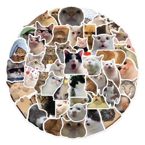 50pcs Cute Cat Stickers, Funny Meme Cats Decals Sticker Pack for Cat Lovers, Waterproof Vinyl Aesthetic Stickers for Kindle Water Bottles Skateboard Guitar Scrapbook Luggage (Art Deco)