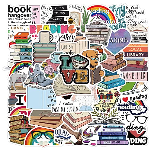 50Pcs Reading Stickers for Laptop Car Bike Helmet Phone Guitar Skateboard Computer I Love Reading Vinyl Stickers Waterproof Aesthetic Trendy Sticker Pack Decals for Adults Teens Boys