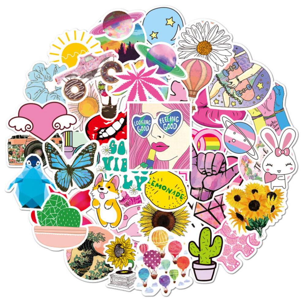100pcs/set Cartoon Vsco Cute Small Fresh Stickers Pvc Waterproof Graffiti Decorative Suitcase Guitar Notebook Stickers