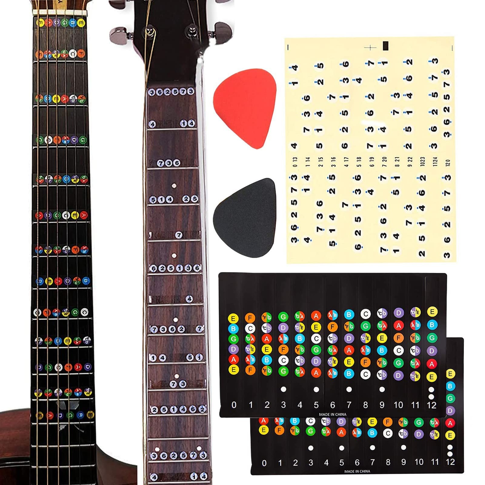 Guitar Fretboard Stickers, Color Coded Note Decals Guitar with Chords Scale