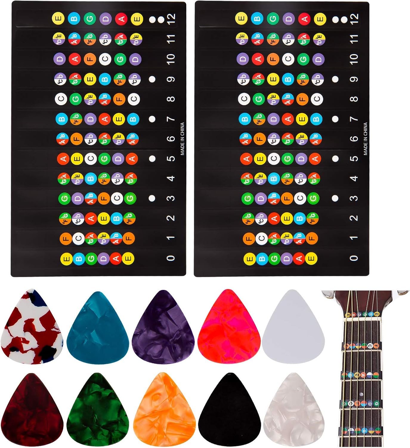 2Pcs Guitar Fingerboard Stickers and 10Pcs Guitar Picks 6 Acoustic Guitar String