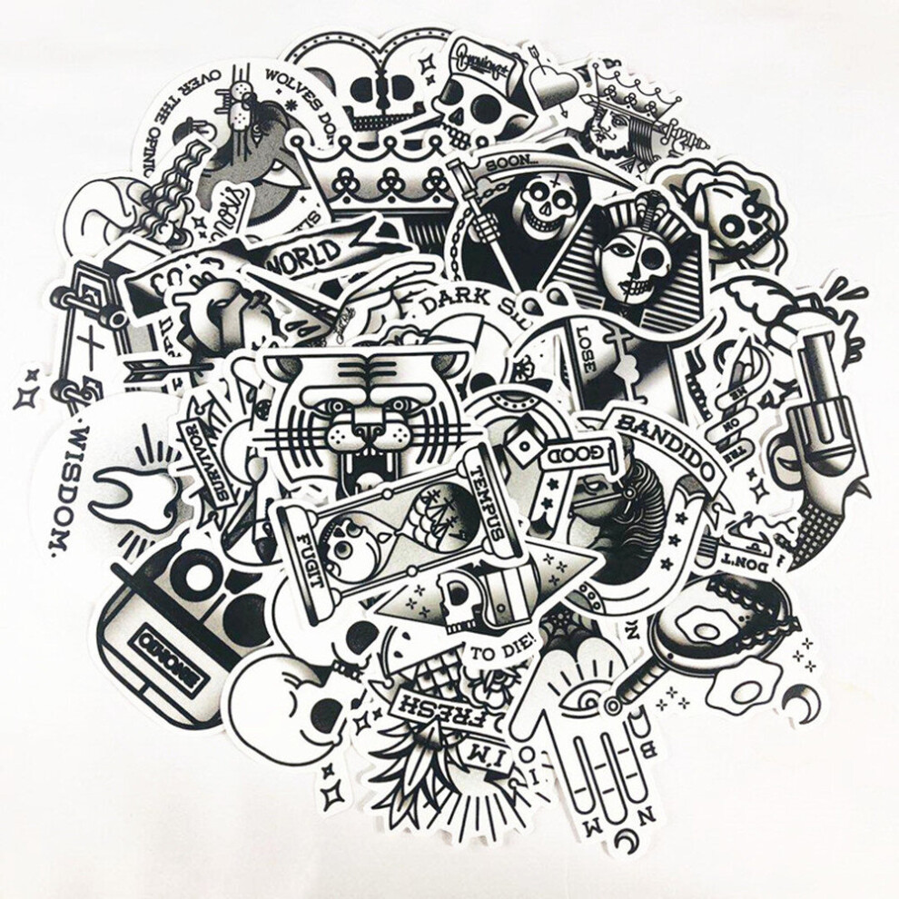 29pcs/Pack Black and White Punk Skull Stickers Waterproof PVC Luggage Laptop Skateboard Guitar Car Cool Stickers Kids Toys