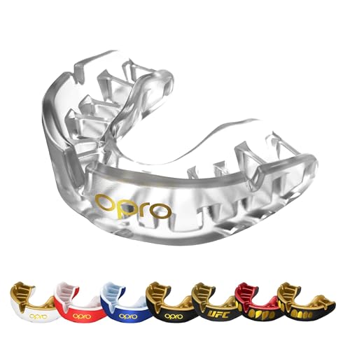OPRO Gold Level Mouthguard for Braces Premium Fit – Gum Shield Adult (Age 10+) – OPRO Mouth Guard Boxing and MMA, Easy Self-Fit Gum Shield Rugby and Hockey – Premium Protection with Dental Warranty