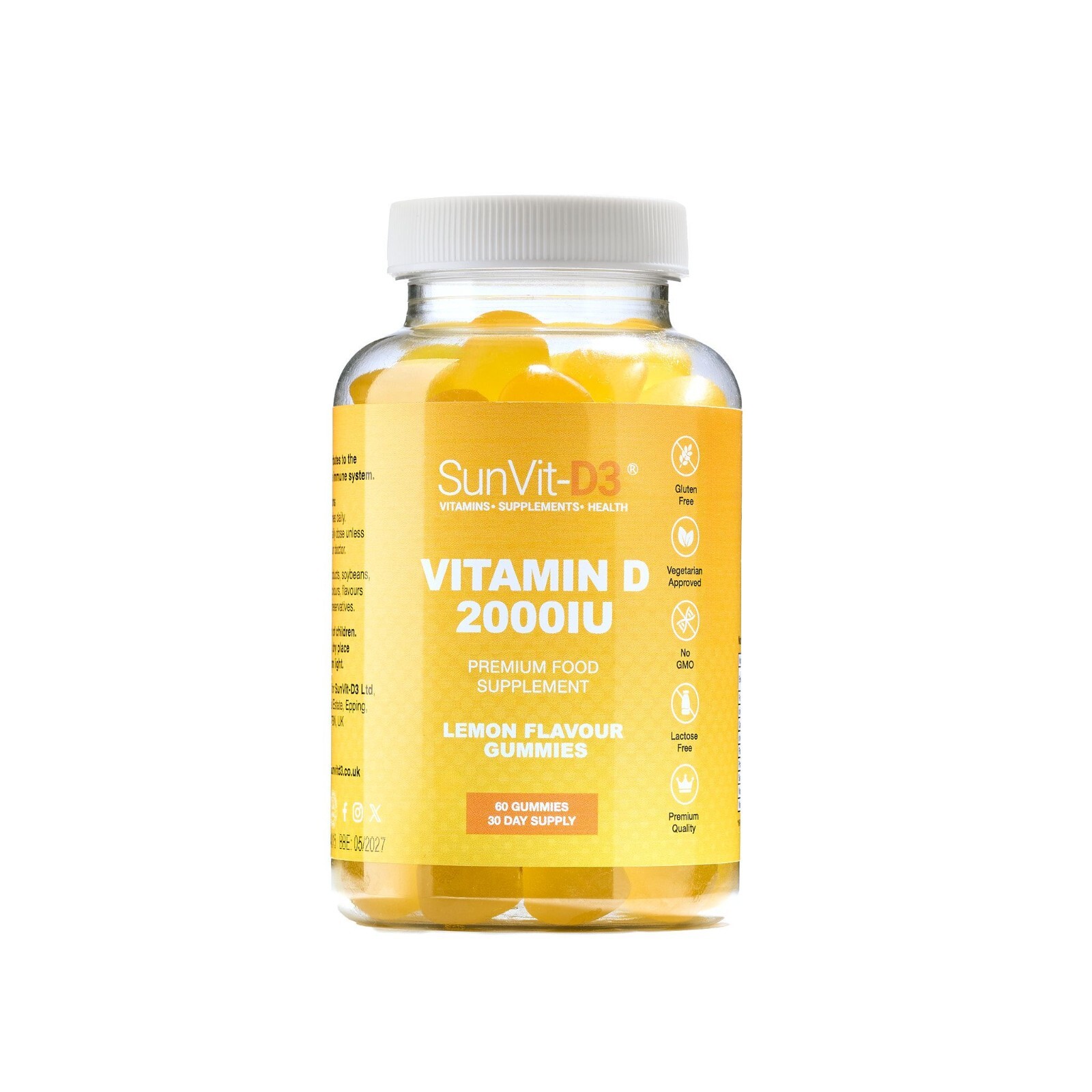 Vitamin D3 1000iu Gummy | High Strength | 60 Vegan Gummies | Suitable for 12+ Years | Lemon Flavour | Immune, Bones & Muscle Suppo