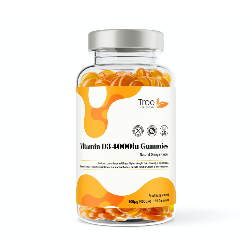 Vitamin D3 4000iu - 150 Natural Orange Flavour Chewable Gummies - Five Months Supply - Non GMO Tasty Gummy Supplement to