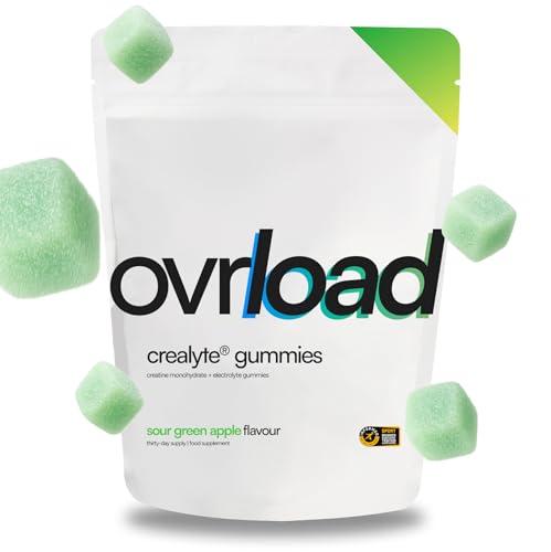 Ovrload Crealyte® Gummies, 90 Creatine Gummies (1 Month Supply), 4500mg per Serving, Added Electrolytes Vitamin D3 & Pink Himalayan Salt, Creatine Monohydrate Gummy for Men & Women, Sour Green Apple