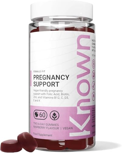 Known Pregnancy Support Gummies with 400mcg Folic Acid – Raspberry Flavour – Vegan Prenatal Multivitamin Gummy Supplement – with Vitamin D3, K, C, E, B12, Biotin & Zinc – 1 Month Supply