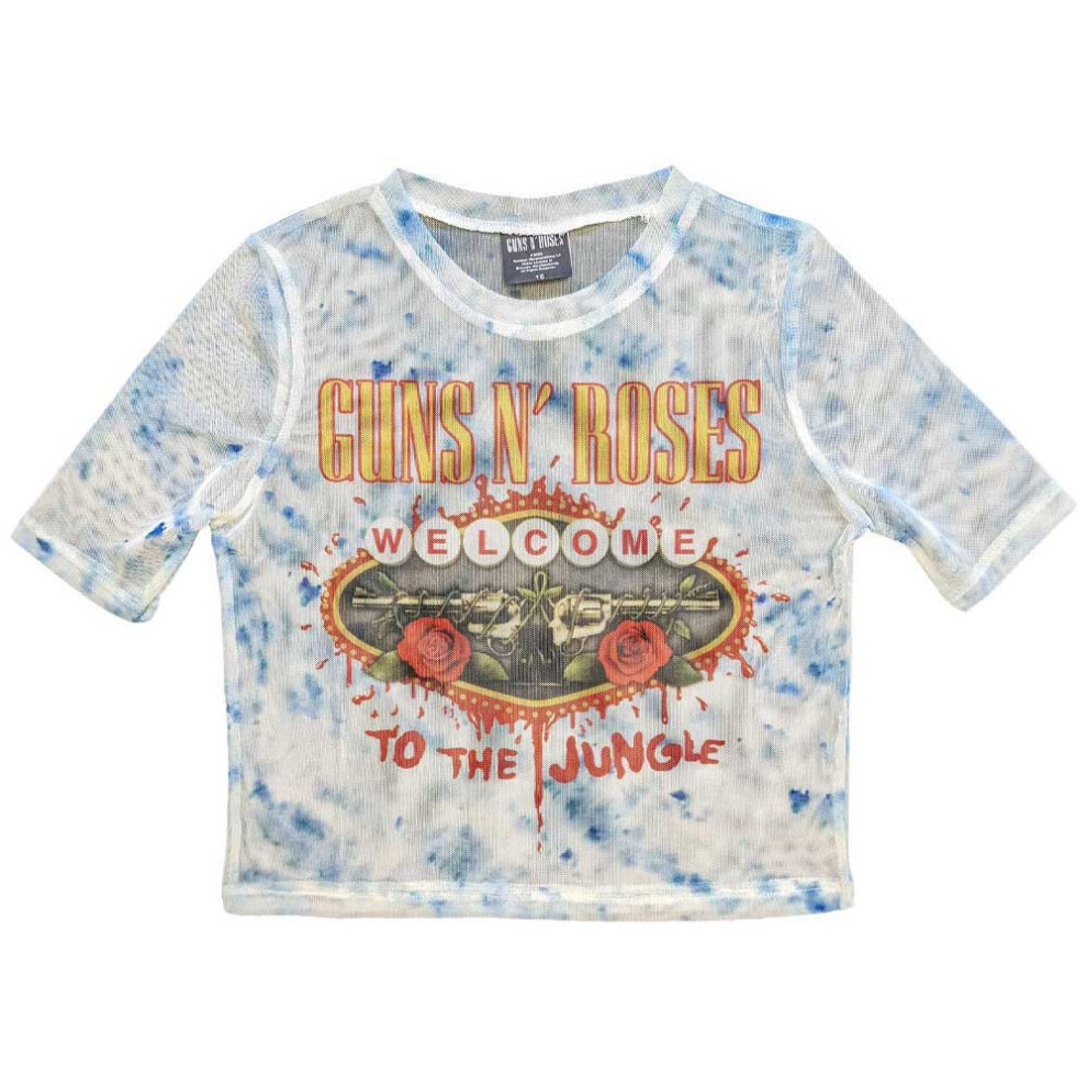 (XS, White) Guns N Roses Welcome To The Jungle Mesh Crop Top