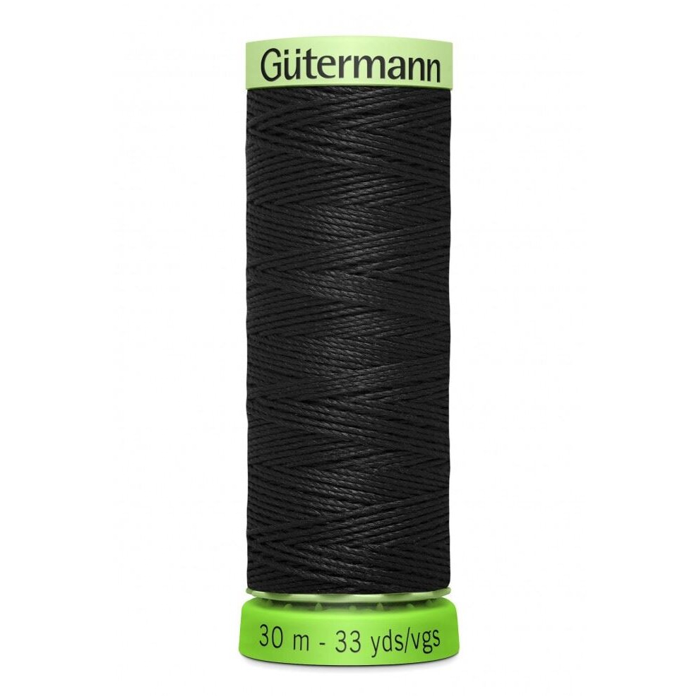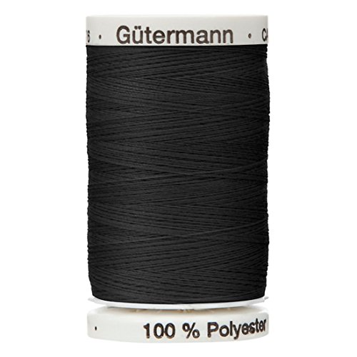 Black Colour 000 Gutermann Top Stitch Sewing Thread Extra Strong Thick Polyester Upholstery Jeans Denim Button Stitch (1 x 30 Meter Spools)