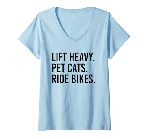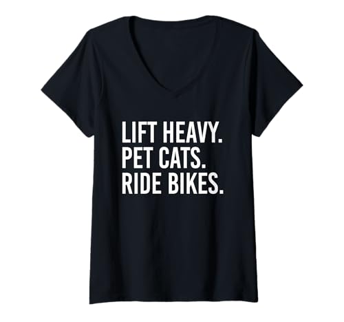 Women's Lift Heavy Pet Cats Ride Bikes Gym Workout Motorcycle V-Neck T-Shirt