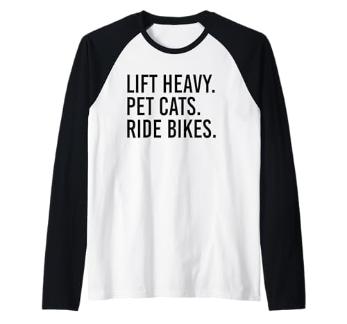 Lift Heavy Pet Cats Ride Bikes Gym Workout Motorcycle Raglan Baseball Tee