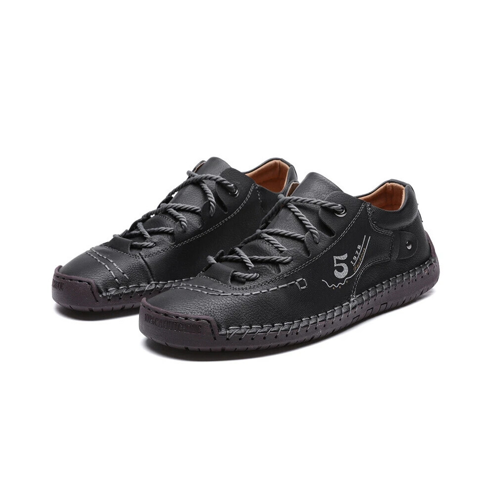 (Black low, UK 10 / EU 45) Mens Hand Stitched Shoes Casual Light Comfy Lace Trainers Walk Gym Jogging Boots
