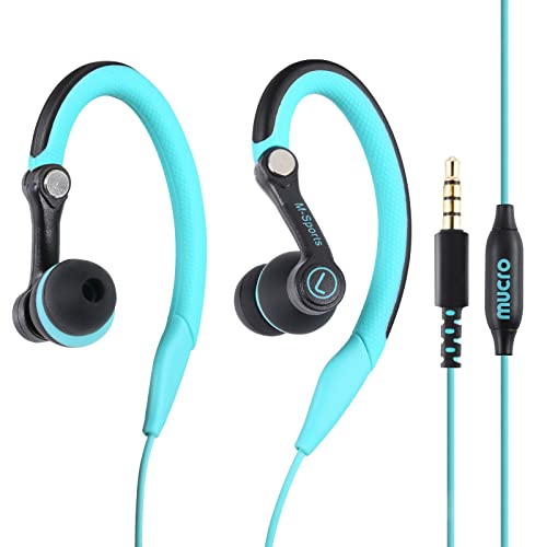 mucro Sport Headphones Wired Earbuds With Microphone, Sweatproof Running Earphones Corded Over Ear Hook Workout Gym in Ear Jogging Earbuds for 3.5mm Jack Devices