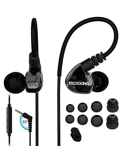 MOXKING Running Sports Earbud Headphones Wired Over Ear In Ear Headsets Noise Isolation waterproof Earbuds Enhanced Bass Stereo Earphones with Microphone and Remote for Running Jogging Gym (black)