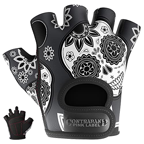 Contraband Pink Label 5237 Designer Series Workout Gloves for Women | Sugar Skull Print Weight Lifting Gloves for Women w/Grip-Lock Padding | Gym Gloves for Women w/Medium Padding (Gray, Medium)