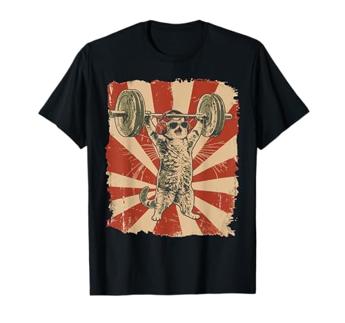 Retro Weight Lifting Gym Cat Deadlift Headphones Fitness T-Shirt