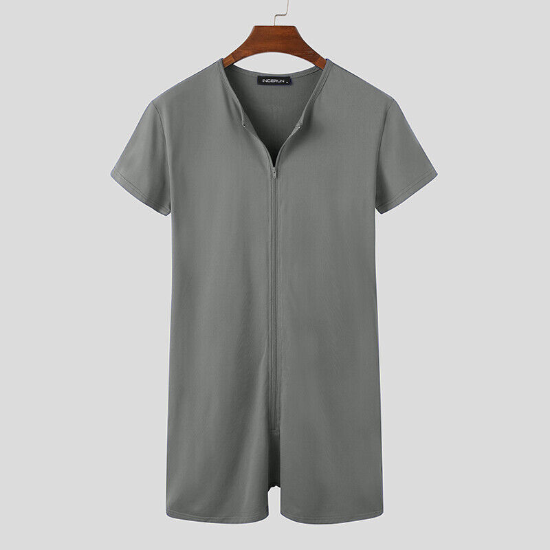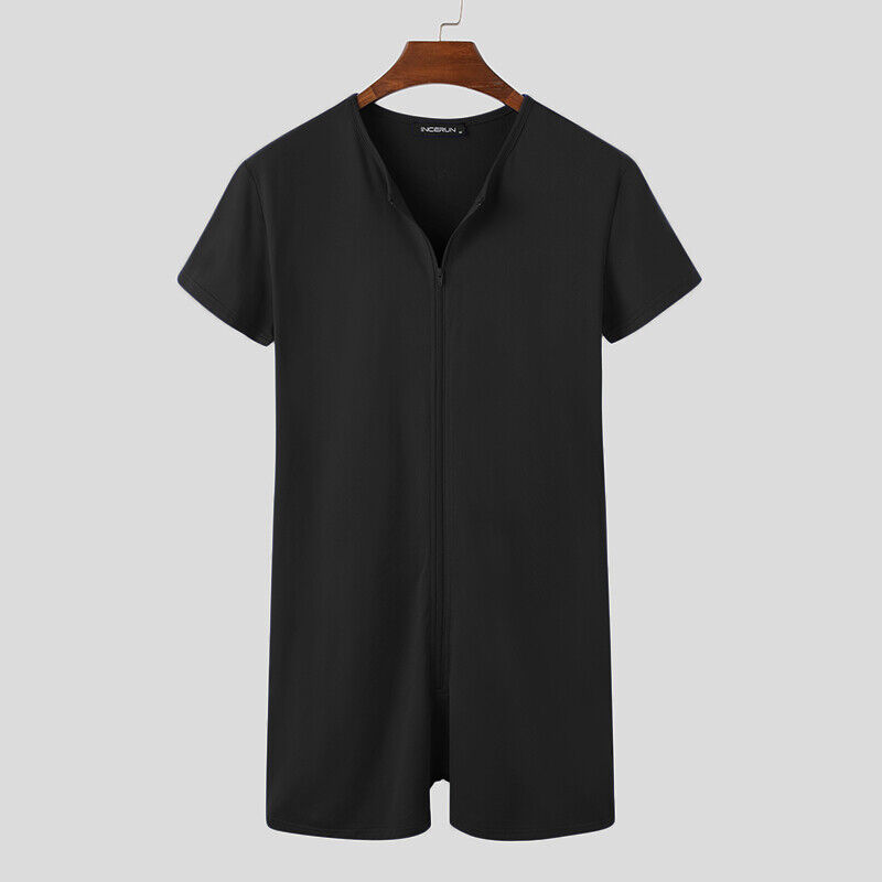Mens Bodysuit Leotard T-Shirt Casual Gym Jumpsuit Zip Up Shorts Romper Nightwear