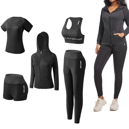 ODWTMRK Tracksuit Womens Full Set Gym Sets Sport Running Exercise Workout Yoga Outfits Activewear Sets Jumpsuit Set(Black,S)