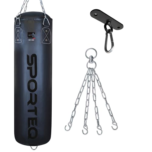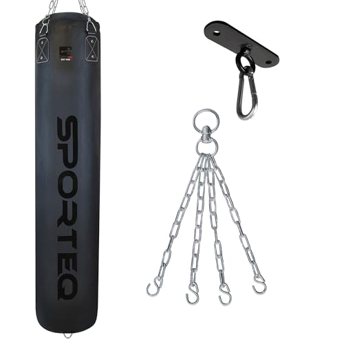 Sporteq Dyno Heavy Filled Punch Bag 3FT, 4FT & 5FT for All Ages & Genders | Punching Martial Arts Kickboxing Muay Thai Karate Boxing | Home & Commercial Gym Use (Matt Black, 4FT)