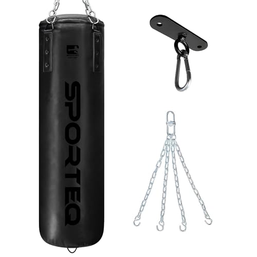 Sporteq Dyno Heavy Filled Boxing Punch Bag 3FT, 4FT & 5FT for All Ages & Genders | Punching Martial Arts Kickboxing Muay Thai Karate | Home & Commercial Gym Use (Matt Black, 3FT)