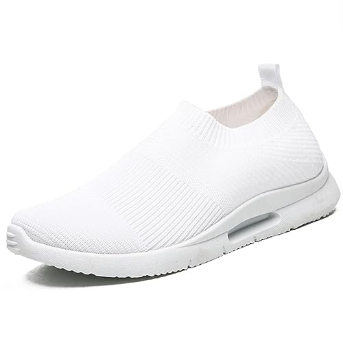 MGNLRTI Trainers for Men Running Shoes Casual Lightweight Slip on Sneakers Gym Walking Trainers White Mens Size 9 UK(Label Size:43)