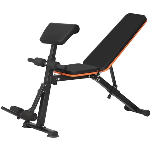 naspaluro Weight Bench Adjustable, Full Body Exercise Folding Fitness Workout Bench with 7 Positions, Exercise Bench for Weight Lifting & Sit Up Abdominal Supine Board Flat Home Gym (weight bench B)