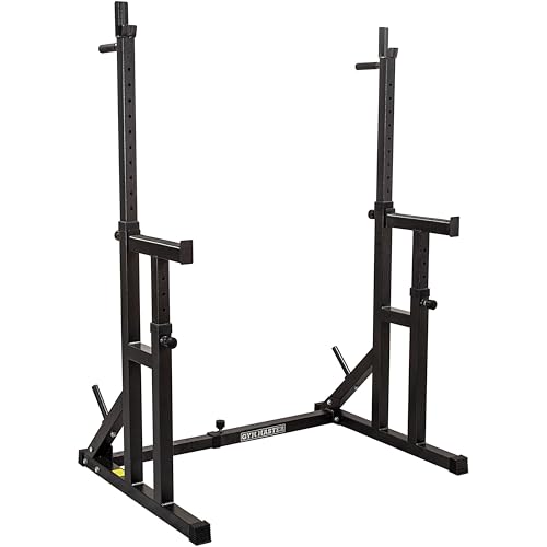 GYM MASTER Fully Adjustable Heavy Duty Squat & Bench Press Rack With Multi Position Spotter, Dip Bars & Weight Plate Holders