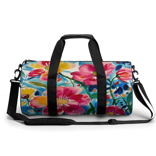 Gym Bag Duffle Bag for Men & Women Watercolor Flowers Print Personal Item Workout Bag Lightweight Carryon Gymbag for Travel,Sports,Fitness