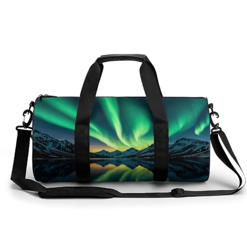 Gym Bag Duffle Bag for Men & Women Aurora Lights Print Personal Item Workout Bag Lightweight Carryon Gymbag for Travel,Sports,Fitness