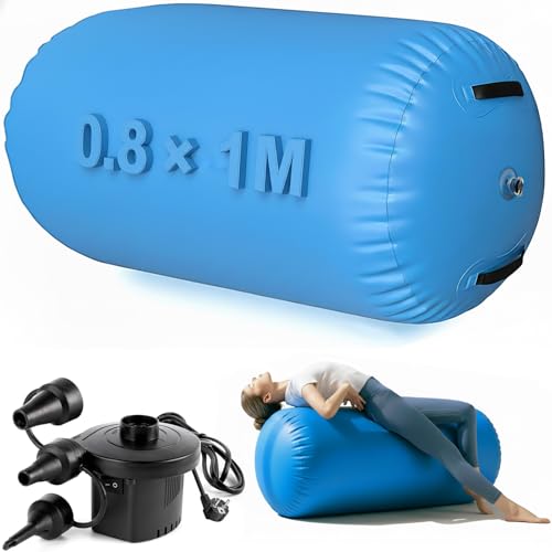 Air Roller Gymnastics Barrel with Pump, Inflatable Tumble Track Mat Gymnastics Equipment for Home Training, Tumbling, Yoga & Backflip Practice, Waterproof Air Tumbling Mat for Home & Studio (0.8 * 1M)