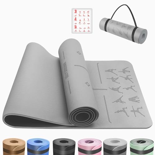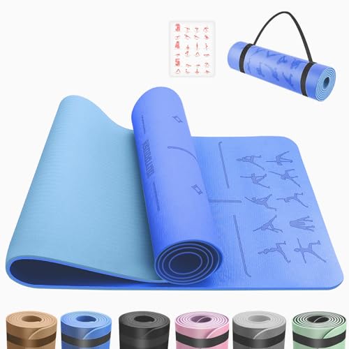 OUTDOUSE Yoga Mat with Alignment Lines,TPE 6mm Sports Exercise Mat,Non-Slip,for Gymnastics,Pilates,Home, Travel,Gymnastics Mat with Storage Straps,Yoga Mats for Women and Men,183x61x0.7cm