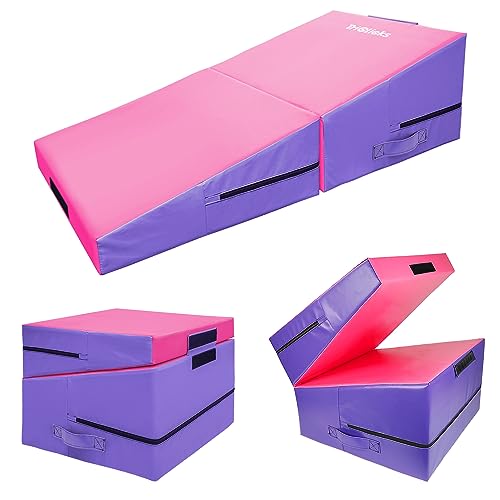 KIASTER Folding Incline Gymnastics Mat Kids Cheese Wedge Skill Shape Tumbling Mats with Carry Handle, Gym Yoga Mat for Boys Girls Home Training Aerobics Fitness Exercise (Purple+Pink)