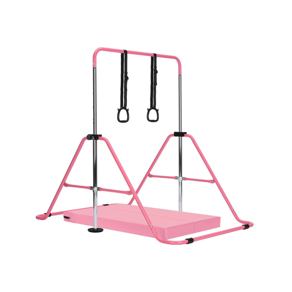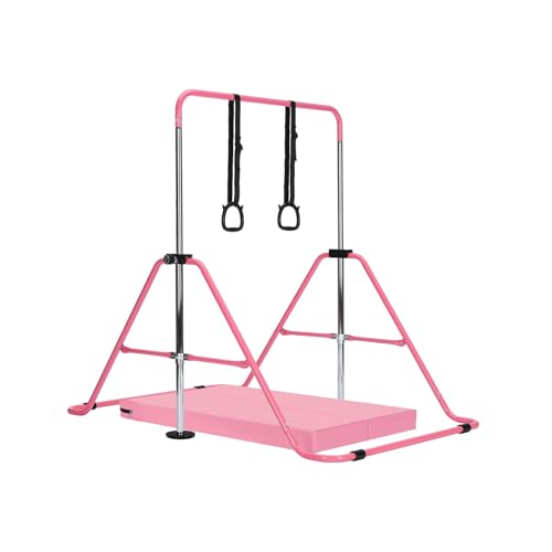 Gymnastics Bar with Mat, Adjustable Kids Gymnastics Equipment for Home, Training Kip Bar with Non-Slip Base, 5 Height Levels 31.5-51.2", Gym Bars for Children, Easy Assembly Design (With Mat, Pink)