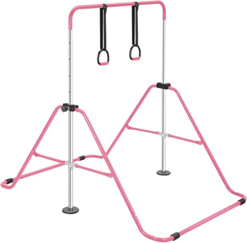 Gymnastics Bar without Mat, Adjustable Kids Gymnastics Equipment for Home, Training Kip Bar with Non-Slip Base, 5 Height Levels 31.5-51.2", Gym Bars for Children, Easy Assembly Design (No Mat, Pink)