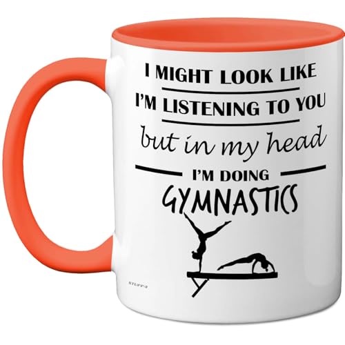 Stuff4 Gymnastics Gifts - in My Head Mug - Funny Gift for Gymnastics Lover Men Women - 11oz Premium Ceramic Dishwasher Safe Orange Handle Mugs Novelty Cup