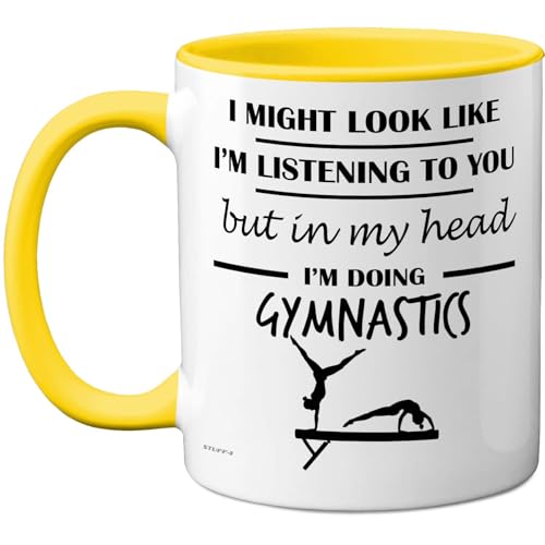 Stuff4 Gymnastics Gifts - in My Head Mug - Funny Gift for Gymnastics Lover Men Women - 11oz Premium Ceramic Dishwasher Safe Yellow Handle Mugs Novelty Cup