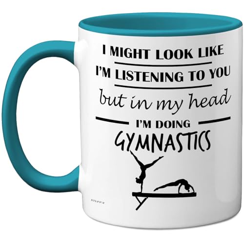 Stuff4 Gymnastics Gifts - in My Head Mug - Funny Gift for Gymnastics Lover Men Women - 11oz Premium Ceramic Dishwasher Safe Light Blue Handle Mugs Novelty Cup