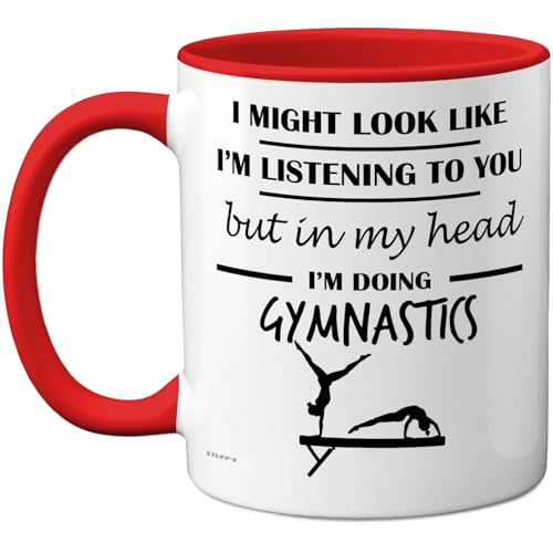 Stuff4 Gymnastics Gifts - in My Head Mug - Funny Gift for Gymnastics Lover Men Women - 11oz Premium Ceramic Dishwasher Safe Red Handle Mugs Novelty Cup