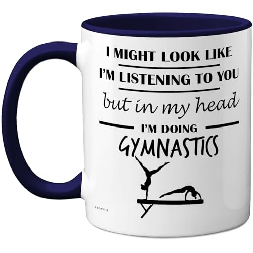 Stuff4 Gymnastics Gifts - in My Head Mug - Funny Gift for Gymnastics Lover Men Women - 11oz Premium Ceramic Dishwasher Safe Navy Blue Handle Mugs Novelty Cup