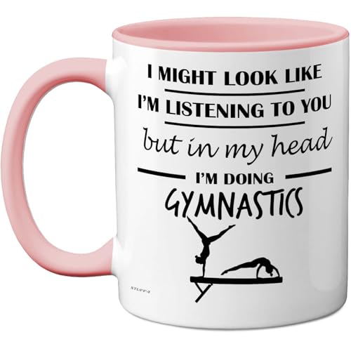 Stuff4 Gymnastics Gifts - in My Head Mug - Funny Gift for Gymnastics Lover Men Women - 11oz Premium Ceramic Dishwasher Safe Pink Handle Mugs Novelty Cup
