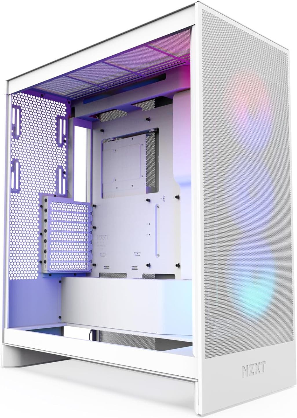 NZXT H7 Flow RGB CM-H71FW-R1 - Compact ATX Mid-Tower PC Gaming Case – High Airflow Perforated Front Panel – Tempered Glass Side Panel – 3 x F140 RGB Core Fans Included – 360mm Radiator Support – White