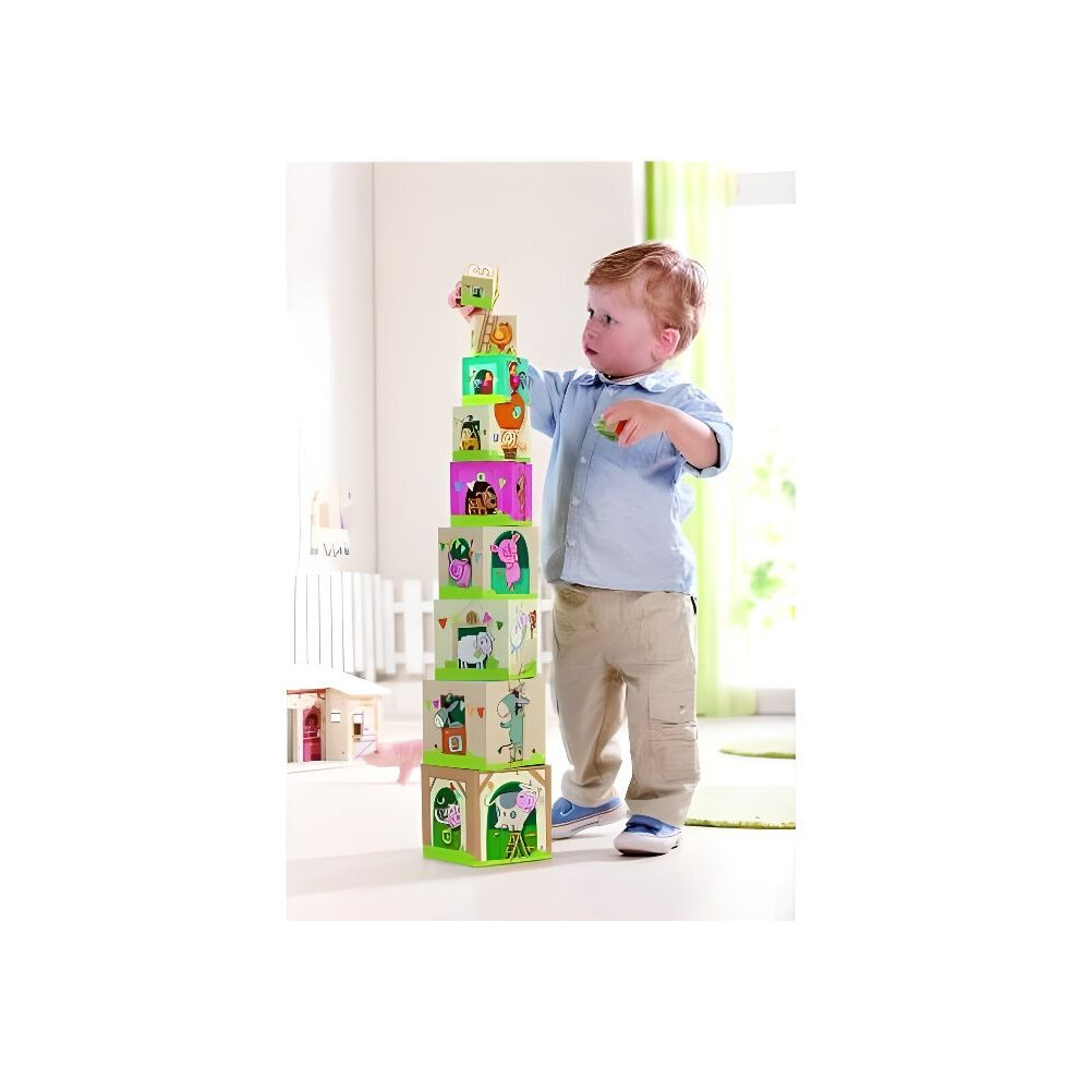 Wooden stacking toy - HABA - Cubes in the countryside - For children aged 12 months to 4 years - Green