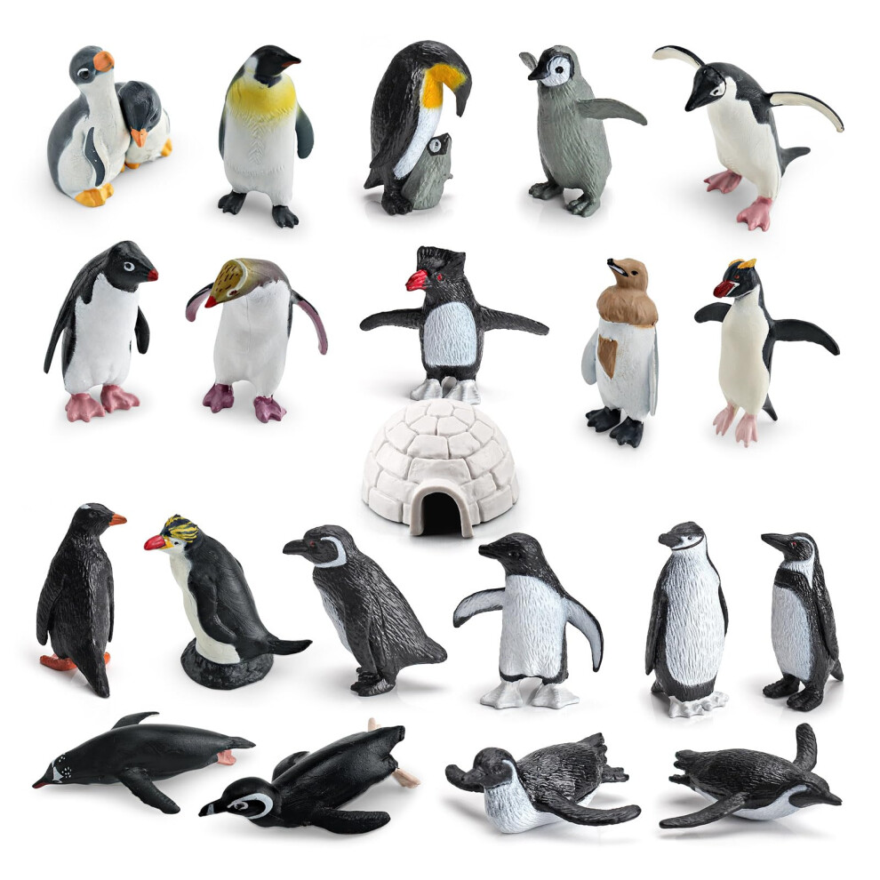 21PCS Realistic Arctic Penguin Figurines with Igloo Winter Habitat Adventure Toys Christmas Birthday Party Supplies Decor