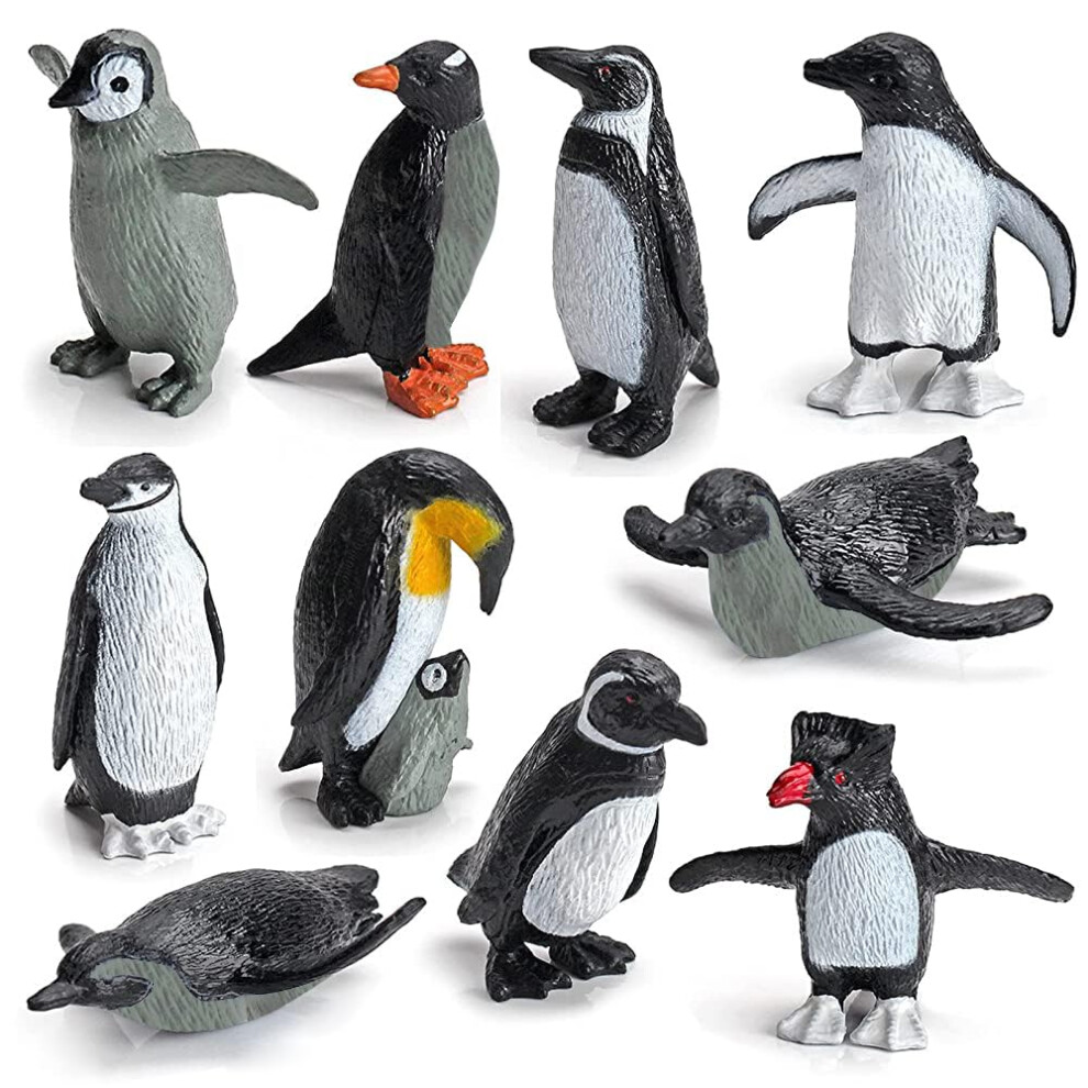 WONWONTOYS 10PCS Realistic Arctic Penguin Figurines Toy Playset Winter Habitat Adventure Toys Christmas Birthday Party Supplies Decor