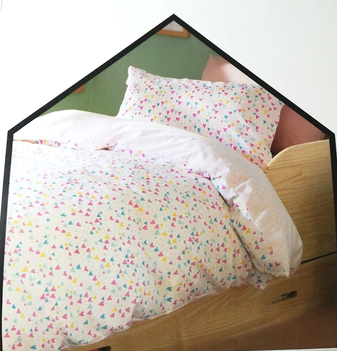 Single Duvet Cover Set Pink Multi Hearts 2 Part Set Habitat Kids 200cm x 135cm