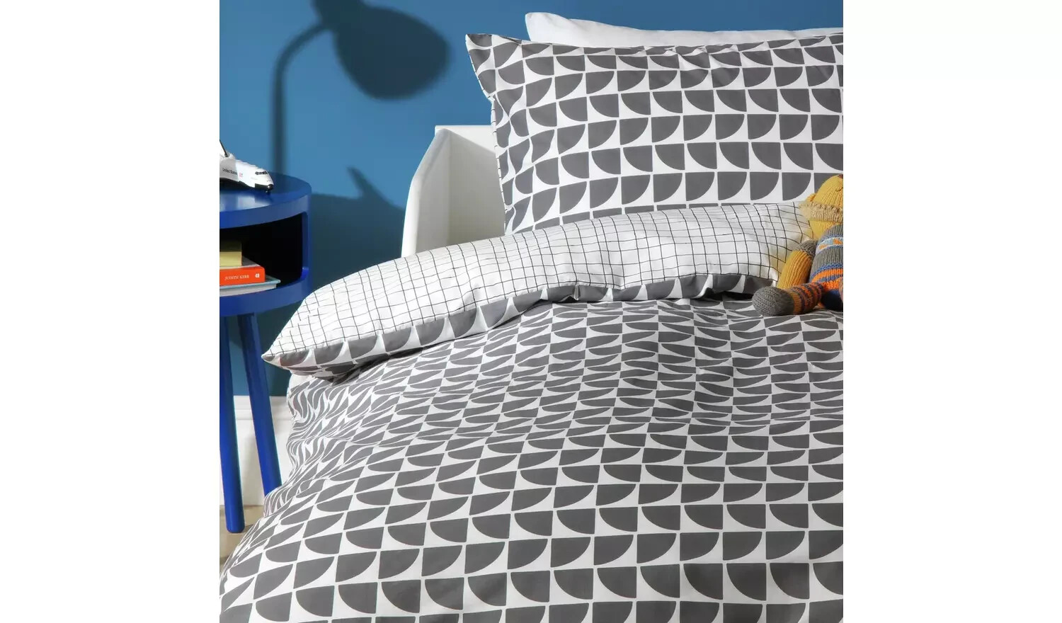 Single Duvet Cover Grey Kids Bedding Set Monochrome Geo Reversible (1571)