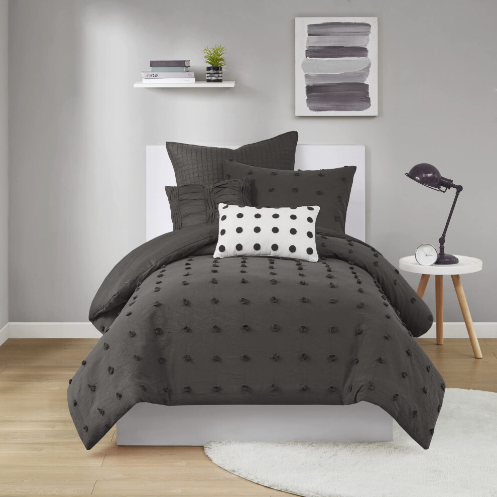 URBAN HABITAT Duvet Set 100% Cotton Jacquard Tufts Accent Shabby Chic All Season Comforter Cover Matching Shams, Pillows, Twin/Twin XL (68" x 92"), Brooklyn, Charcoal