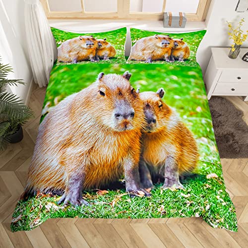 Kids Capybara Bedding Set Single Size,Cute Capybara Duvet Cover for Boys Girls Teens,Funny Rodent Animals Comforter Cover Rustic Natural Habitat Scenery Quilt Cover 2Pcs,Gifts for Capybara Lovers