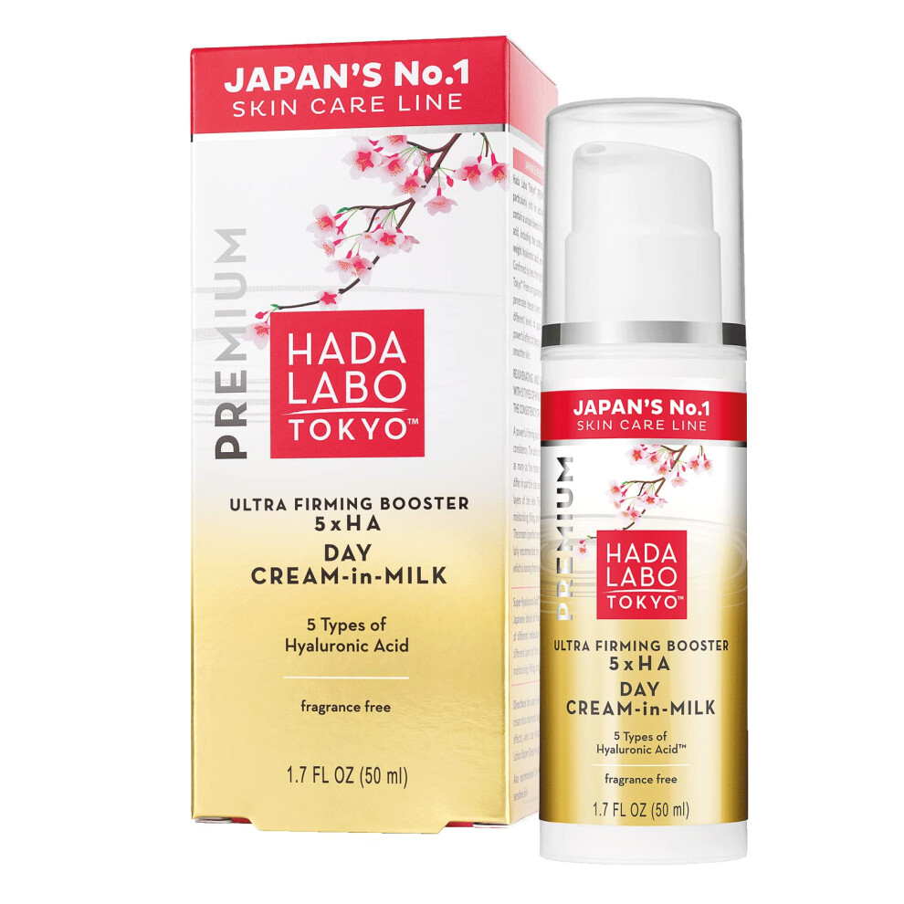 Hada Labo Tokyo - Premium Ultra Firming Booster Day Cream-In-Milk, 7 types of Hyaluronic Acid, 50ml bottle (Pack of 1)